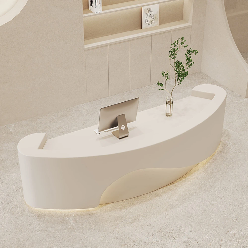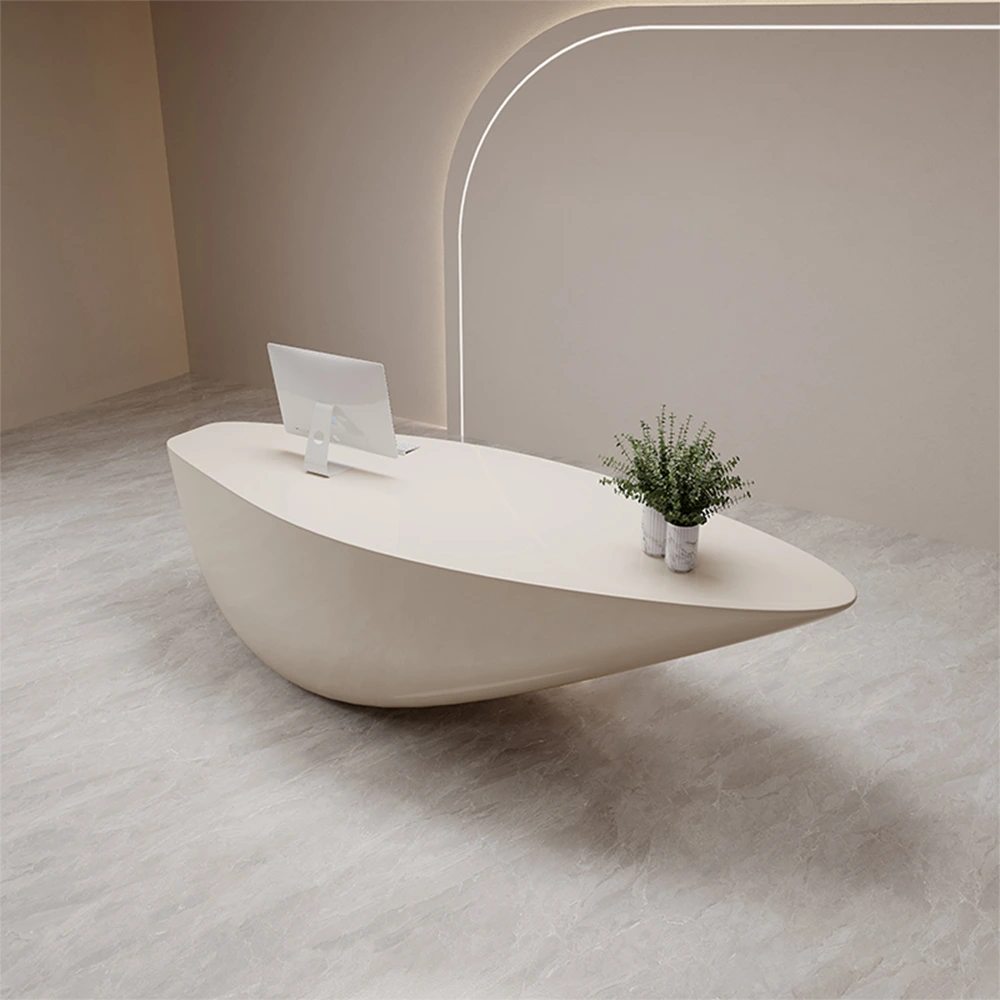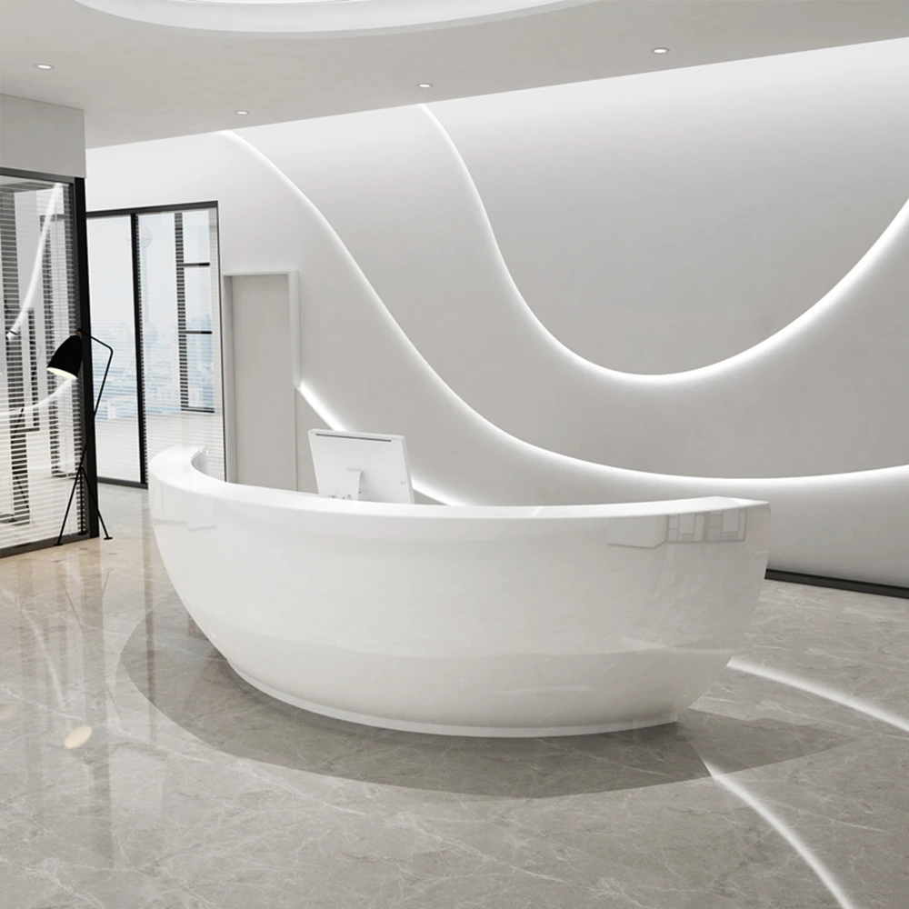 Modern Fiberglass Reception Desk – Curved Counter for Office