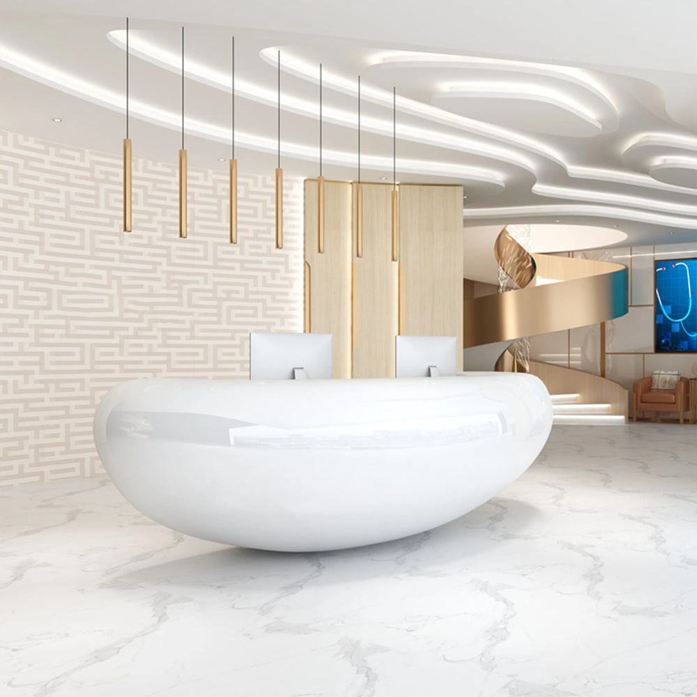 Curved Lacquer Reception Desk – Modern Hotel & Office Counte