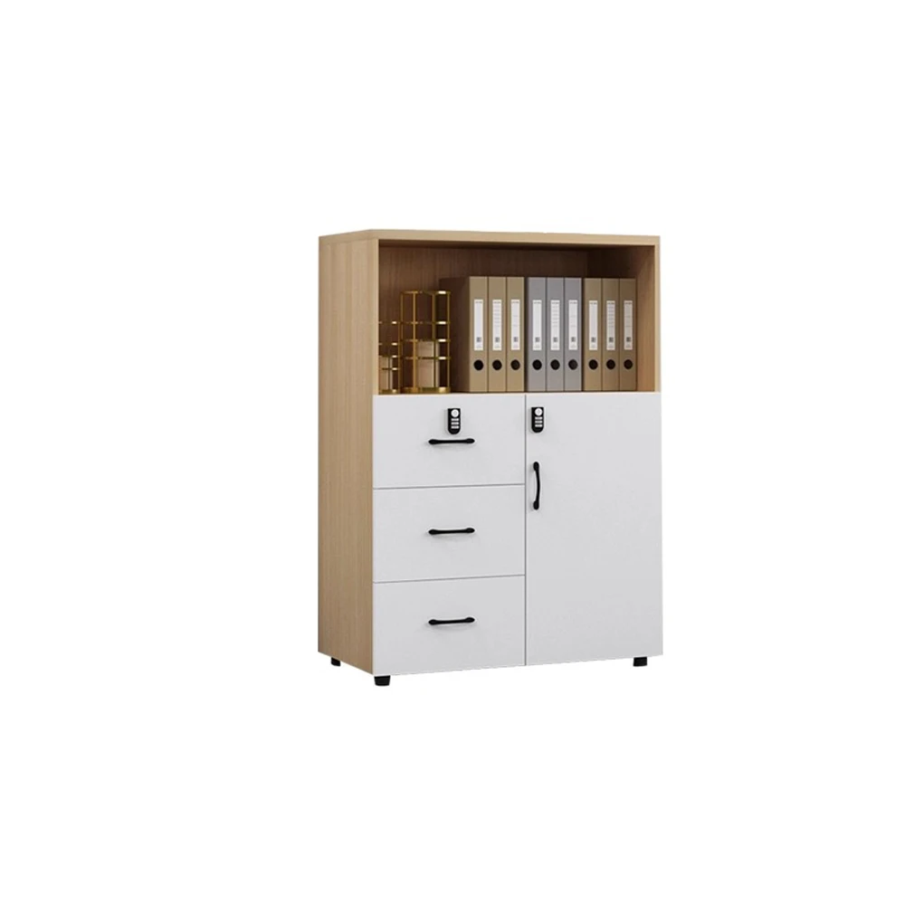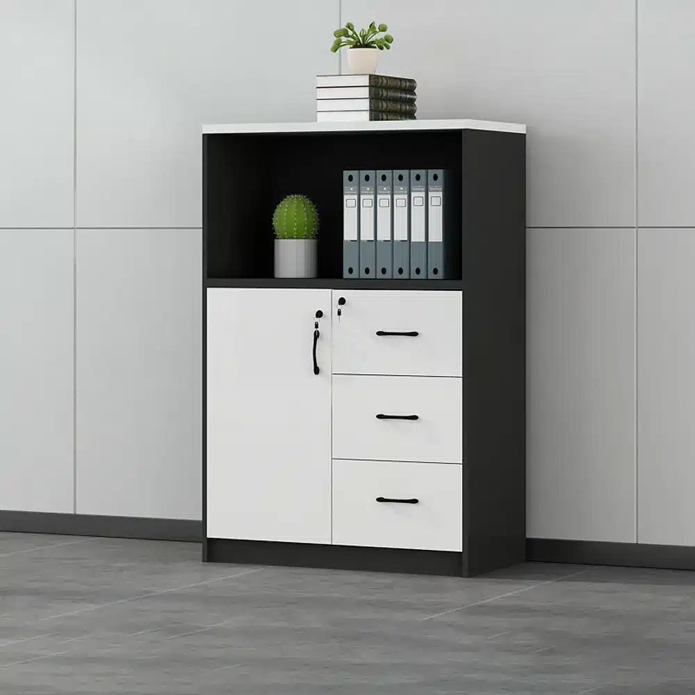 Modern Wood Storage Cabinet-Push Open Drawers, Key Lock, for Office & Study Room