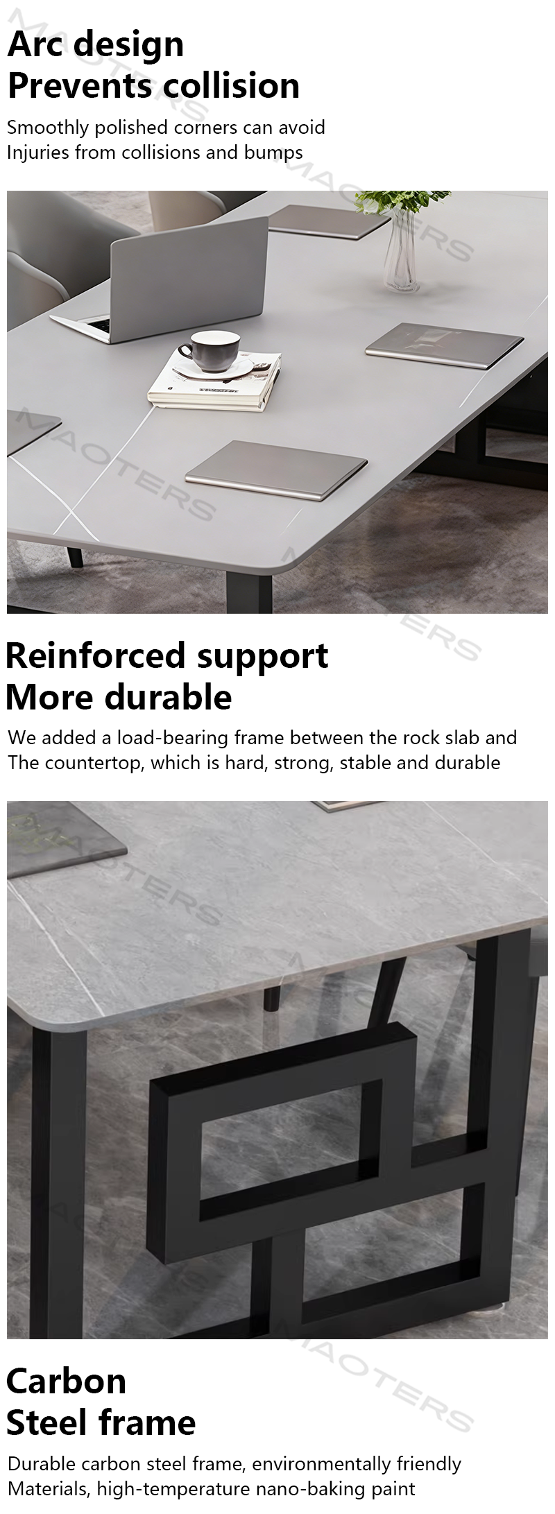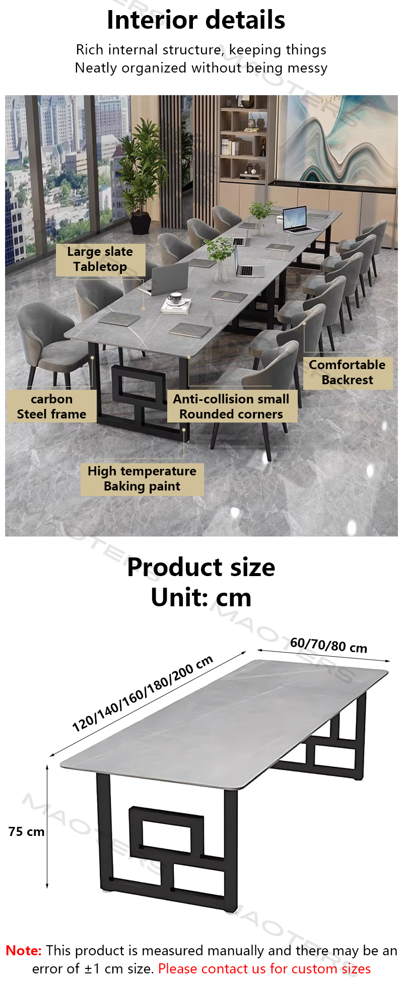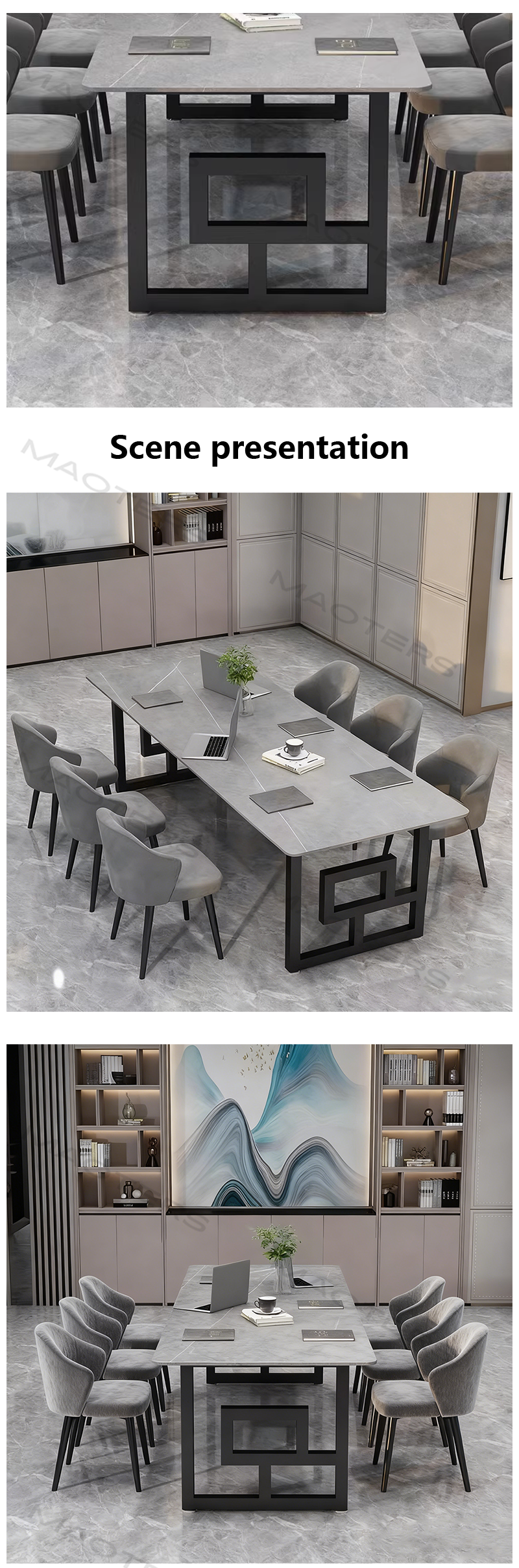 Combining Nordic minimalist aesthetics with the timeless charm of natural stone, this conference table features a smooth, smooth top made from a single piece of premium marble, paired with a cool stainless steel or warm wood base, creating a luxurious aesthetic that blends strength and softness.
