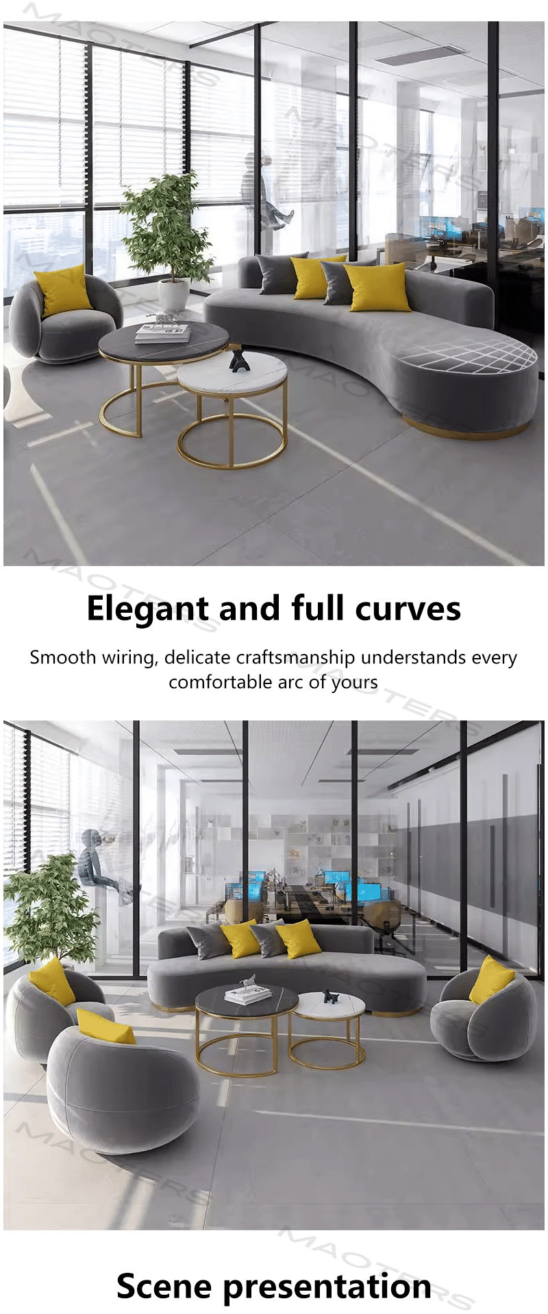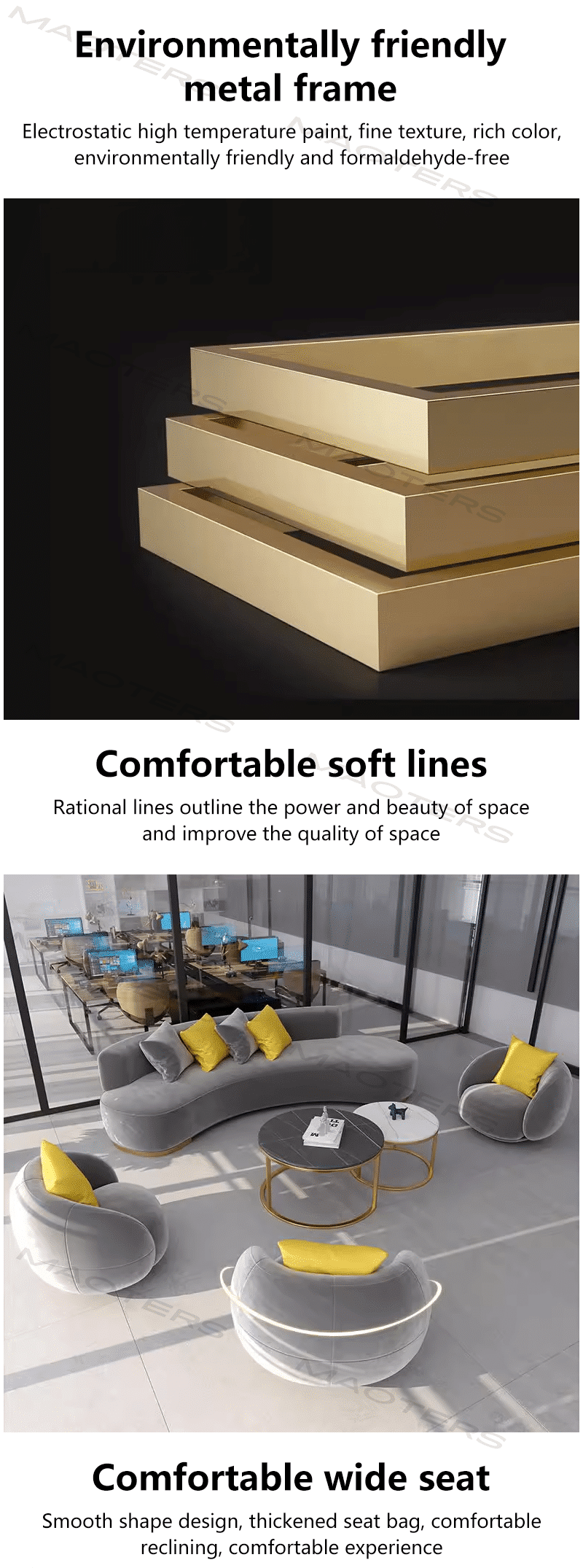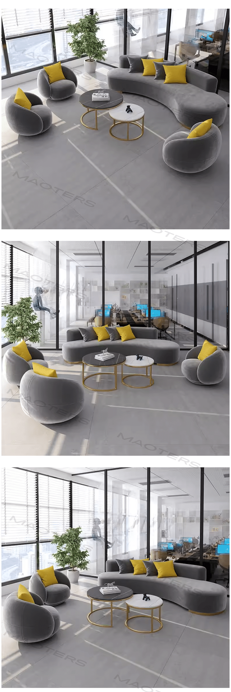 Elegant Gray Fabric Sofa for Office Lounge & Reception