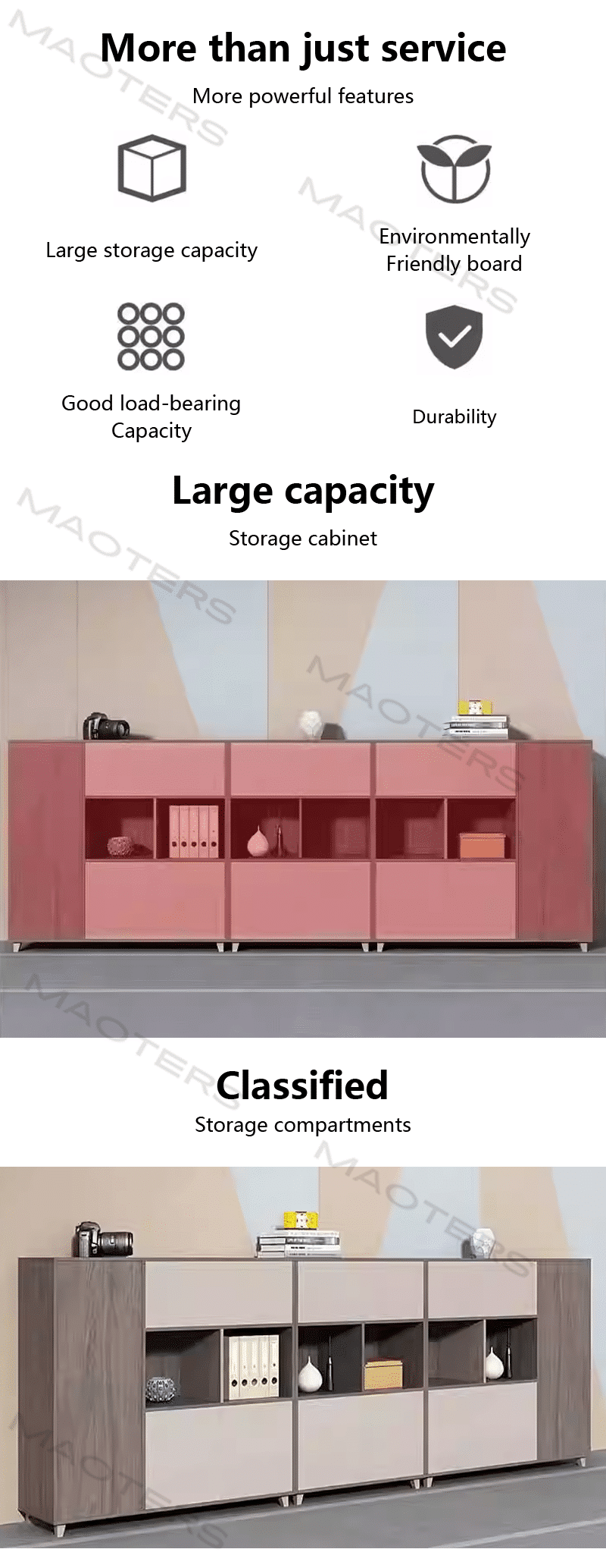 Elegant solid wood panel design Selected North American oak or walnut veneer with natural, smooth wood grain Eco-friendly water-based paint finish for a delicate, wear-resistant, and stain-resistant finish Simple metal legs provide stability and a light visual experience Dual-zone smart storage Upper open bookcase: Multi-layered shelves offer strong load-bearing capacity, perfect for displaying books, decorative items, and plants Lower filing cabinet: Built-in hanging folder rails easily accommodate A4 documents, contracts, and files, with silent sliding drawers Flexible adaptability for various scenarios Office: Efficiently manage documents while showcasing corporate culture and professionalism Home study: Store books and miscellaneous items for a tranquil reading corner Living room partition: Combines storage and decorative functions to enhance the space’s style User-friendly details Hidden handles prevent bumps and keep the facade tidy Reserved cable routing holes on the back facilitate power cord management Adjustable shelves for flexible accommodation of items of varying heights