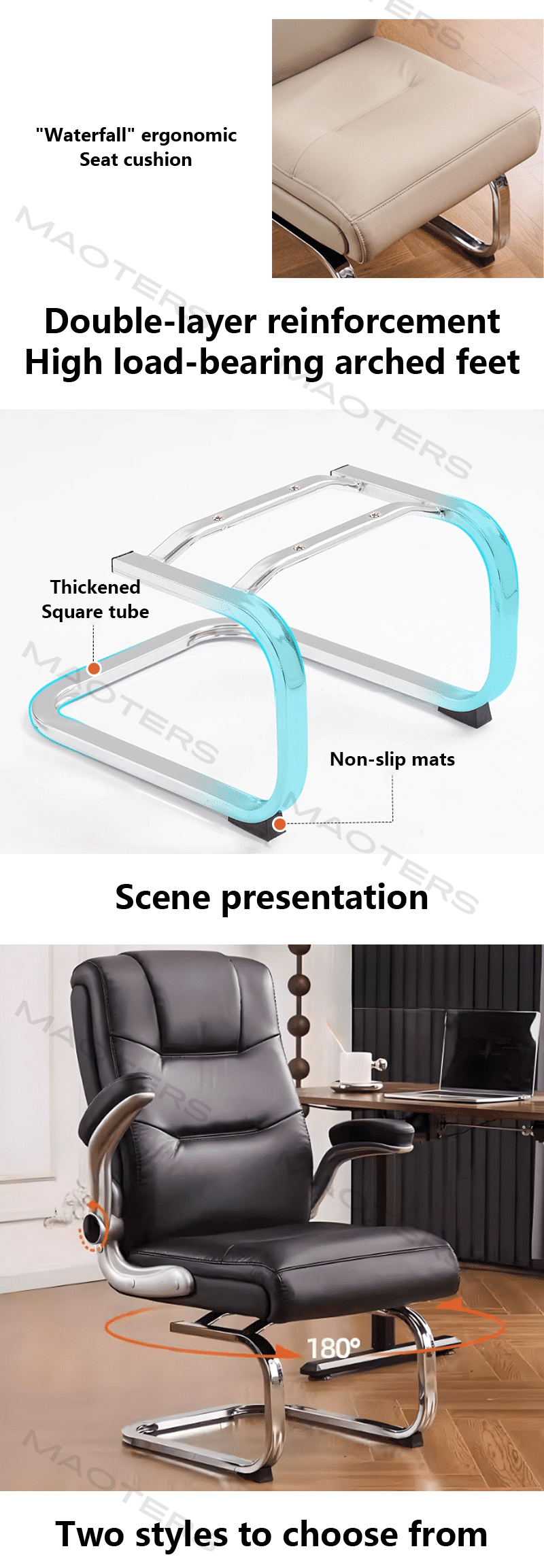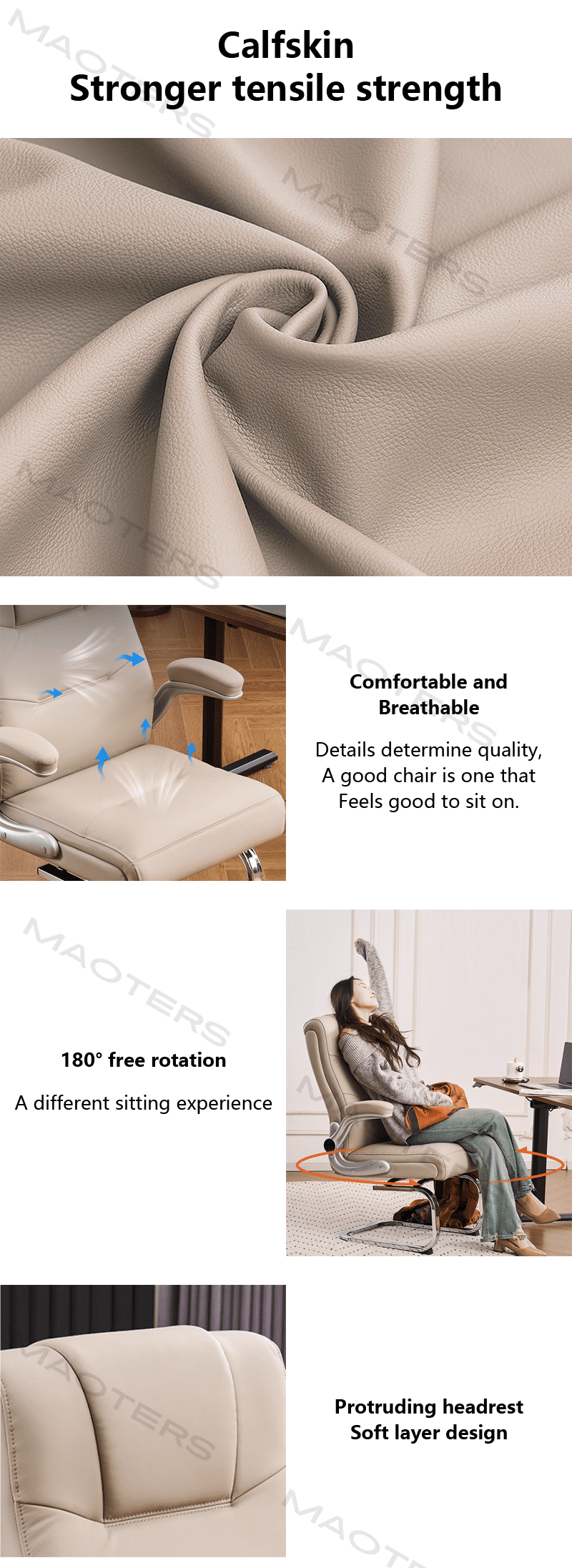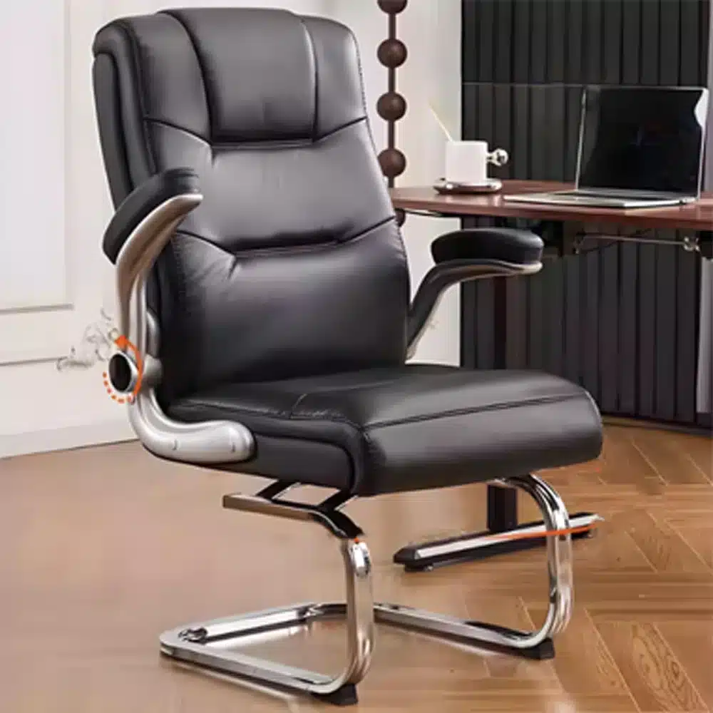 Ergonomic Swivel Chair with Knee-tilt Mechanism & Leather Seat for Home Office Study