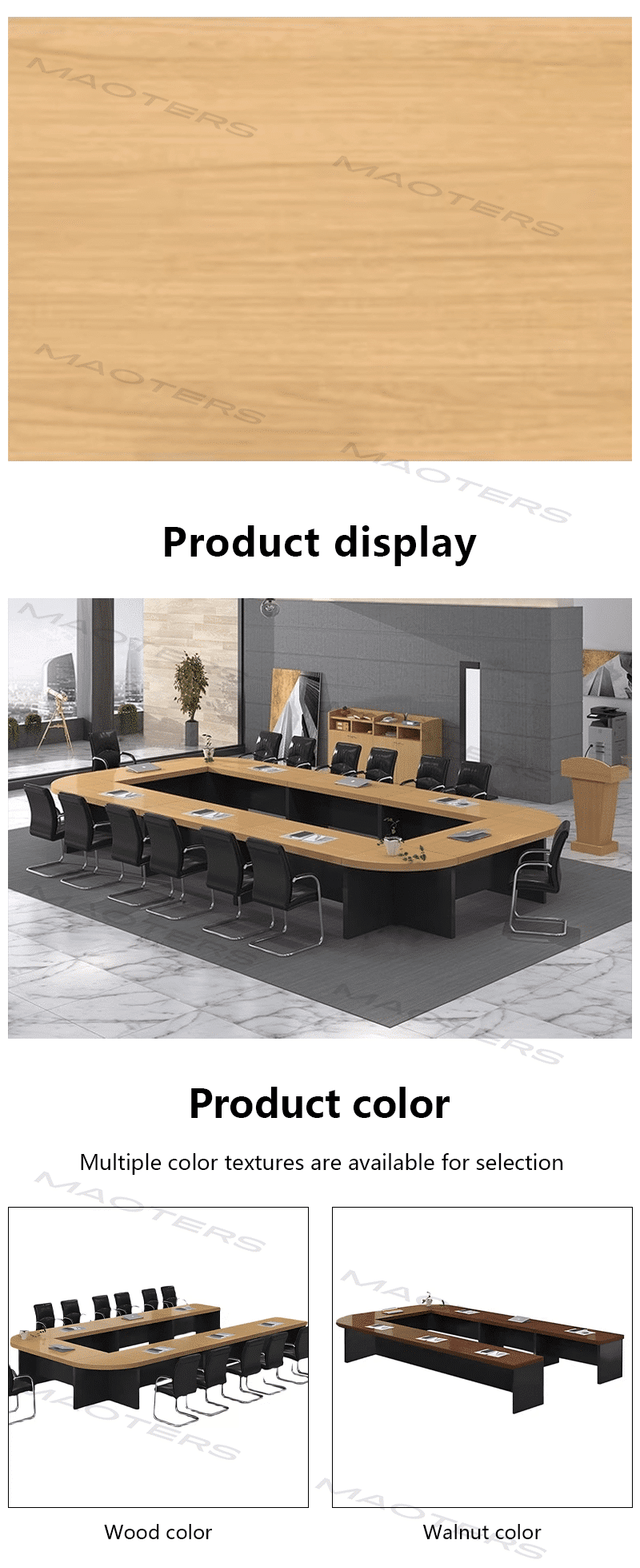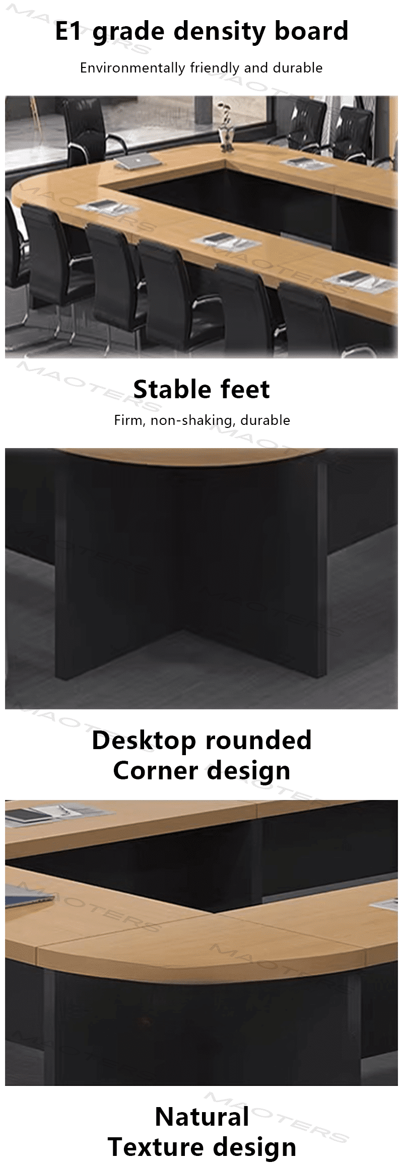 Reimagine the infinite possibilities of collaborative spaces. Maoters’ innovative U-shaped conference and training table, with its forward-thinking design, disrupts the traditional conference format, elevating training, meetings, and team collaboration to a whole new level. The unique U-shaped profile breaks the one-way flow of instruction and creates a 360-degree immersive interactive environment, ensuring every participant has the best view and a sense of engagement. The ingenuity of this multifunctional table lies in its intelligent modular design. The smoothly connected table panels form a complete U-shaped structure, while the central open space provides a free-flowing area for instructors, equipment displays, and interactive demonstrations. The combination of carefully selected eco-friendly panels and a metal support structure ensures durability while showcasing the refined aesthetics of a modern office space. Whether for new employee training, team creative workshops, or important client presentations, this U-shaped table’s unique layout fosters knowledge sharing and the exchange of ideas. Its user-friendly under-table design provides a comfortable legroom for even extended meetings. Choosing the Maoters U-shaped conference and training table is more than just choosing a piece of furniture; it’s choosing a smart way of working that fosters team growth and innovation. It transforms traditional one-way teaching into multi-directional interaction, allowing every idea to shine in the best environment.