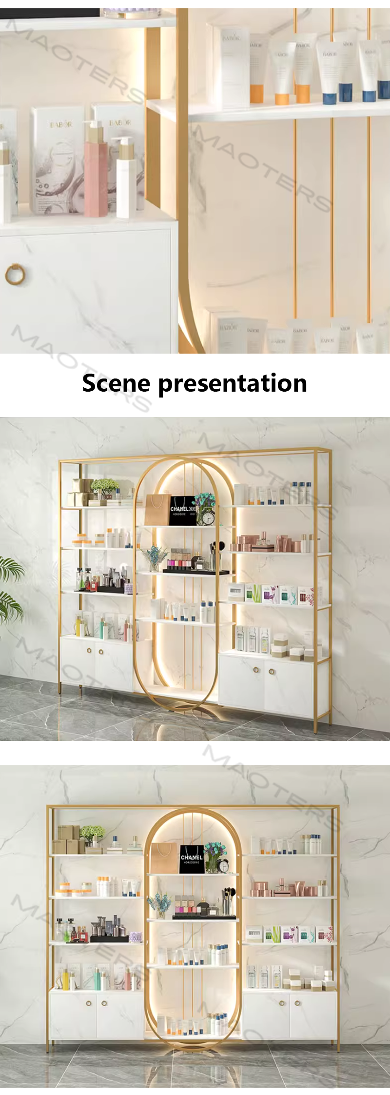 • Flexible and versatile display The shelf height and angle can be freely adjusted to suit product types (such as lipstick, eyeshadow, and foundation), accommodating packaging of varying sizes. It supports three-dimensional, stepped, or rotating display, maximizing space utilization and increasing product exposure.