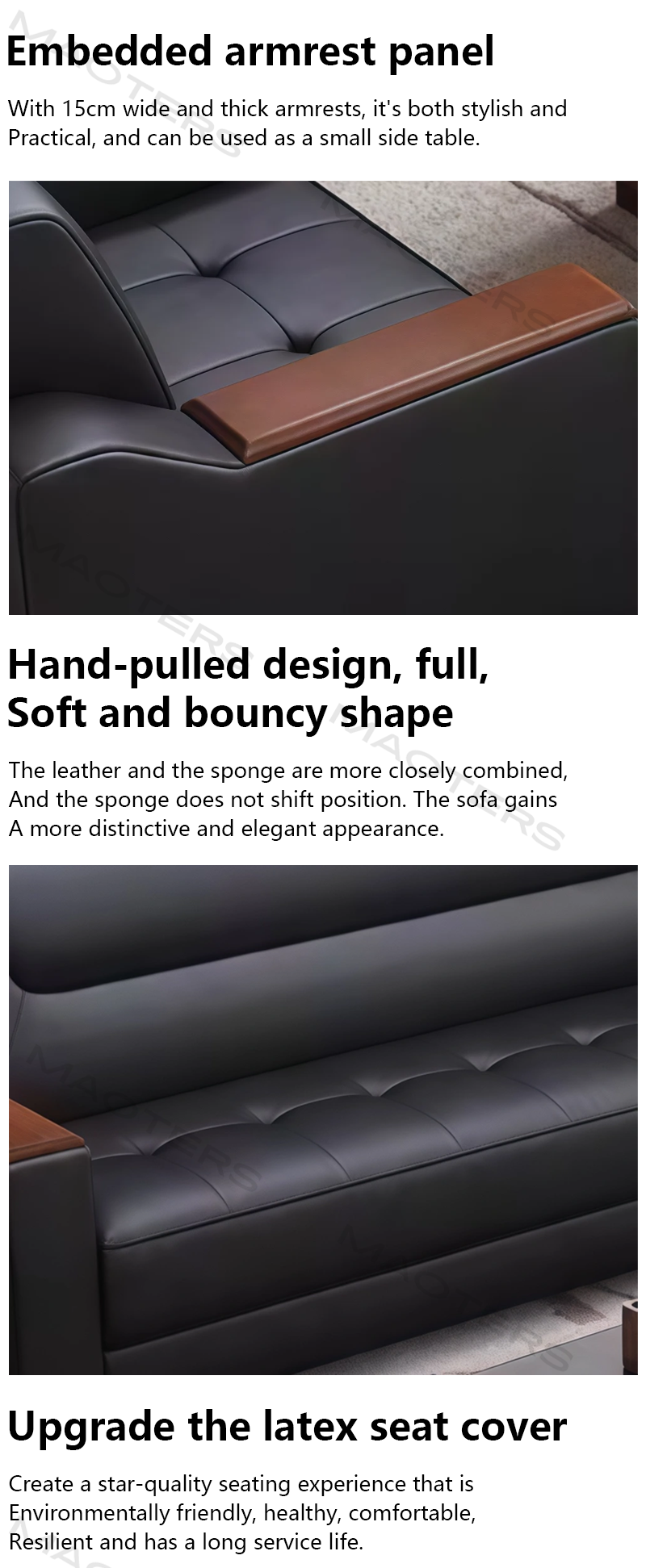Made from Italian green leather, tanned through 12 steps for a breathable, refined feel. Double-layer padding of high-density rebound foam and velvet down provides a cloud-like support.