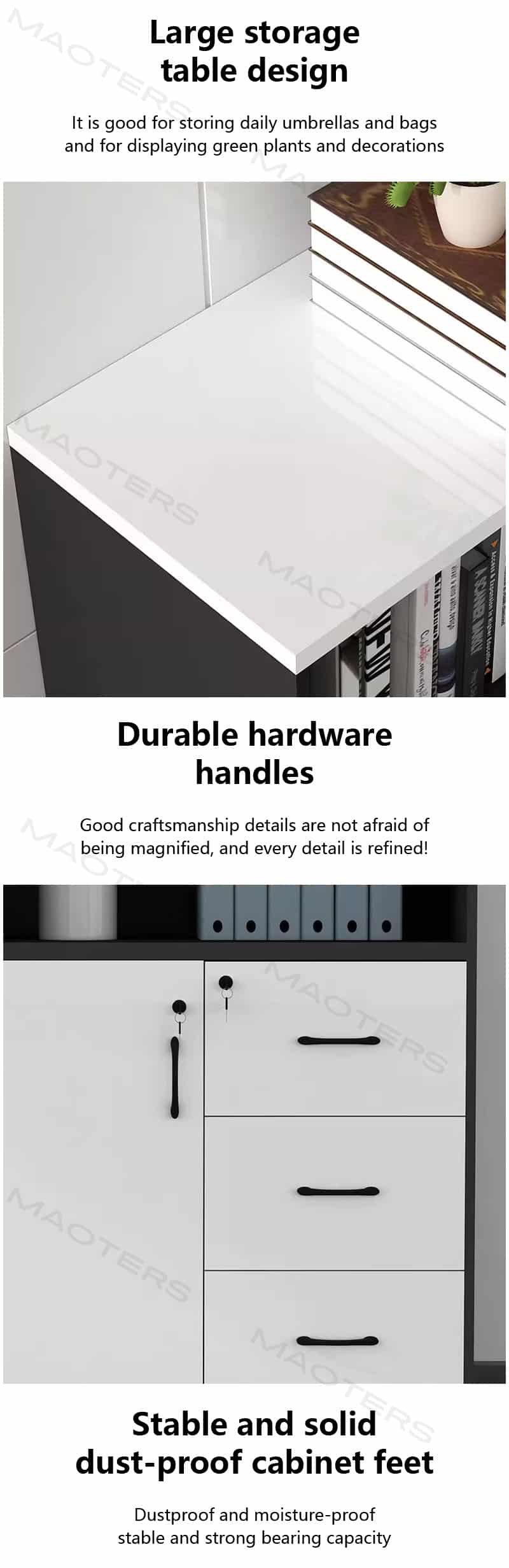 Office Room Divider with Storage – Wood Partition Cabinet with Locking File Drawers