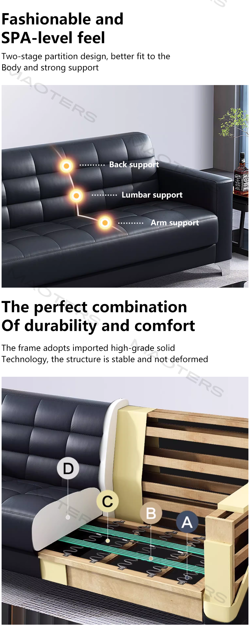 Premium leather texture Italian top-grain cowhide, deeply dyed for a pure black finish Abrasion-resistant coating ensures long-lasting scratch-free use Natural pores maintain breathability, eliminating the need for stuffiness even after prolonged sitting