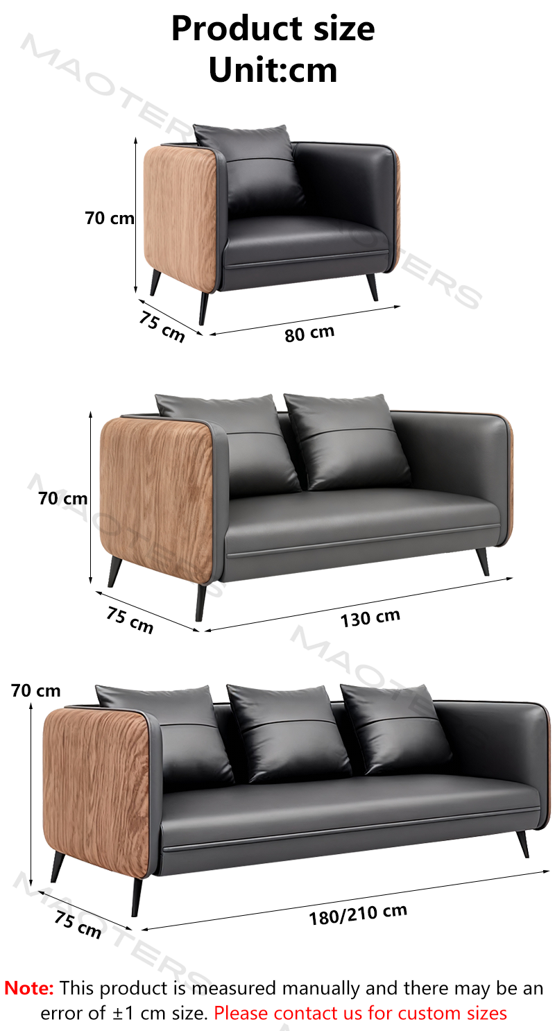 A dialogue between materials and art Imported top-grain cowhide with embossed natural wood grain offers a delicate touch and a unique visual experience Exposed sections of the solid wood frame feature an open-lacquer finish, showcasing the natural beauty of the wood. Metal support components create a sophisticated contrast with the wood elements. Business comfort Zone-type cushion padding system: Highly elastic seating area and soft backrest support.
