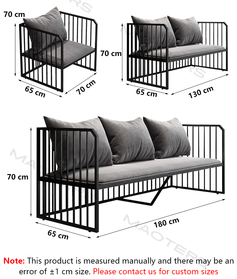 Black epoxy powder coating provides rust resistance, scratch resistance, and a delicate touch. Double X-shaped base provides stable load-bearing and enhances the mechanical aesthetic. Layered gray upholstery. Three shades of gray fabric create a three-dimensional effect. High-density foam and down layered filling provide a perfect balance of firmness and softness. Rotating cushions offer two different seating experiences. Adaptable to various styles. Wrought iron elements complement the industrial style. Gray fabrics blend seamlessly into minimalist environments. Sleek lines balance a rugged feel.