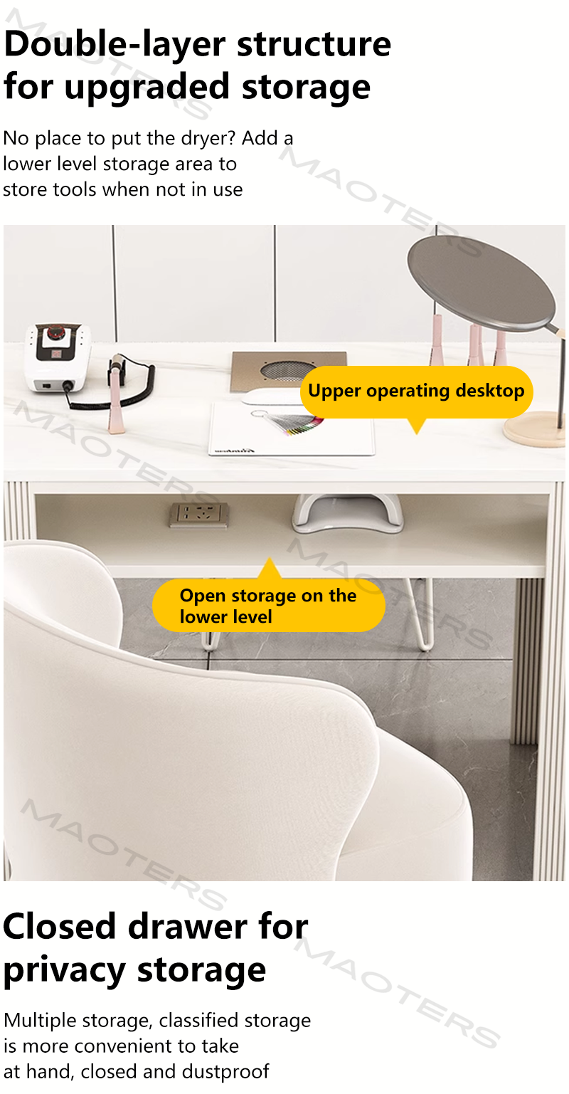 Professional Nail Desk with Integrated Dust Collector & Electrical Sockets