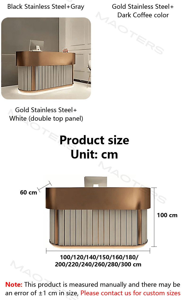 Designed to capture the refined essence of a contemporary beauty salon, our modern reception desk is sure to make a memorable first impression. This striking desk greets customers with its sleek, curved silhouette, while its luxurious high-gloss finish further enhances your establishment’s professionalism. The elegant front panel features soft, integrated lighting, emitting a gentle, warm glow, creating a distinguished experience for every guest. Beyond its captivating appearance, this desk also offers exceptional functionality through its intelligent layout. A spacious counter provides ample space for check-in and product display, while a low-profile lower cabinet securely stores client records and retail merchandise. Its minimalist design complements any salon décor while showcasing your brand’s commitment to modernity and exceptional quality. This desk not only manages your front-of-house operations but also serves as a statement of elegance, ensuring every customer’s arrival is filled with anticipation and a sense of sophistication.