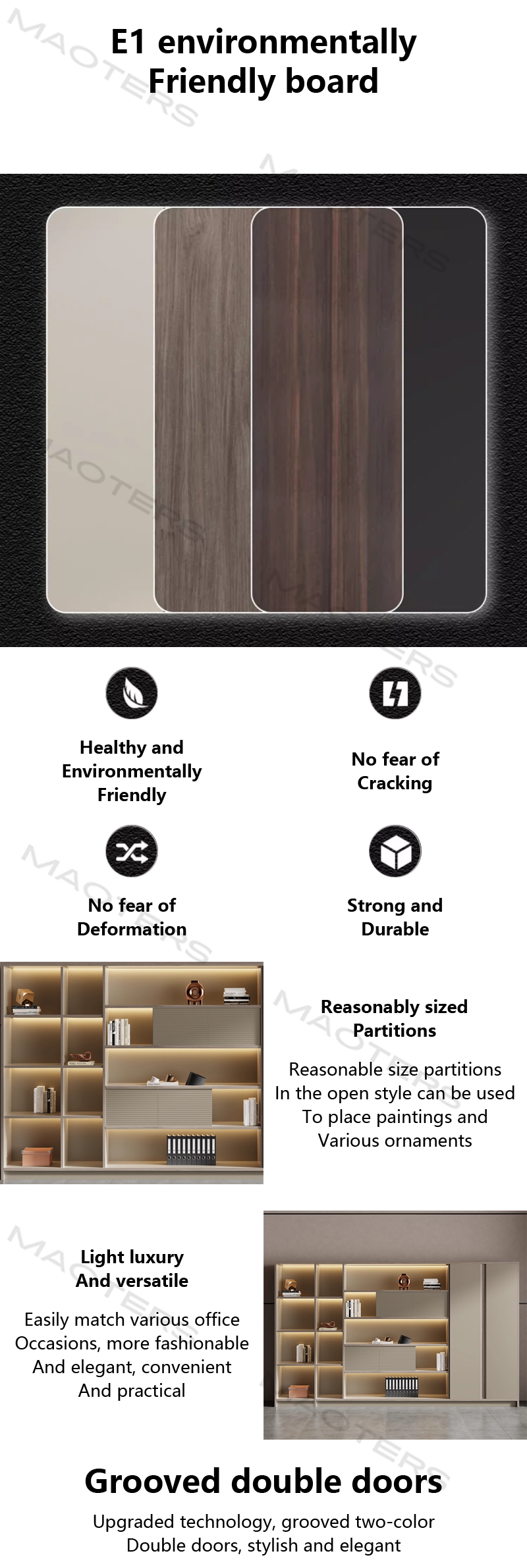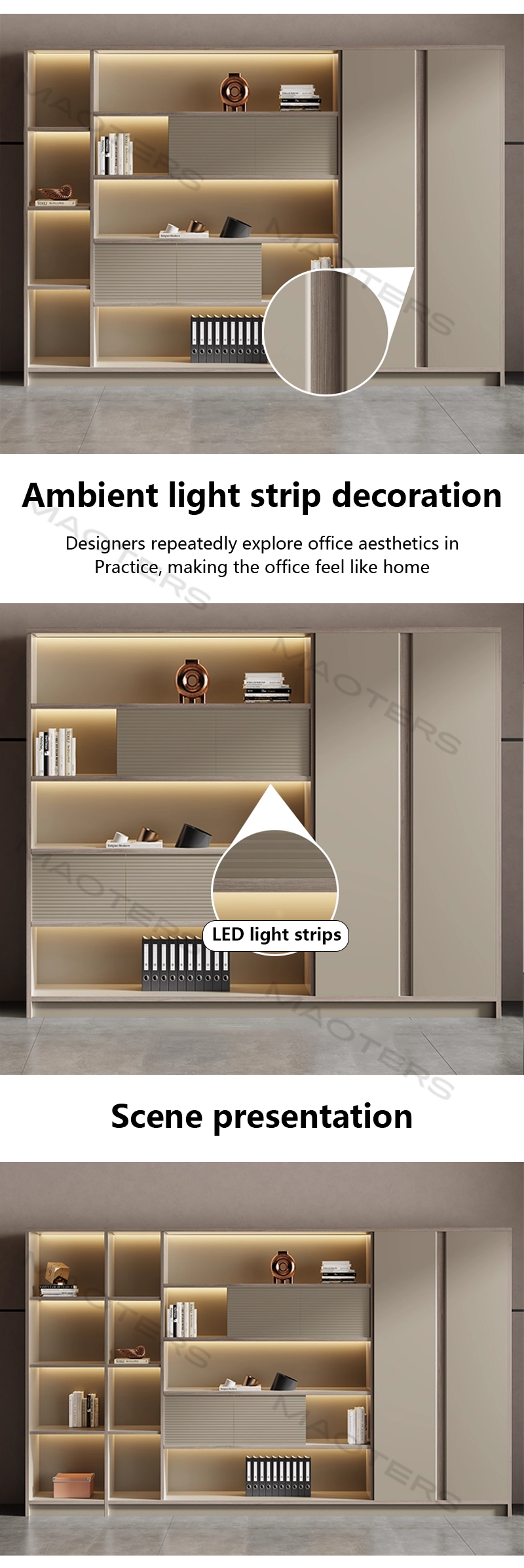 Standing Storage Cabinet for Office – Large Bookcase with Filing & Document Organizer Sections
